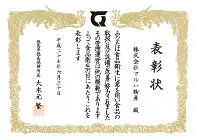 本受賞を機に、よりいっそうの食品衛生向上にむけて全社一体となって参る所存