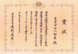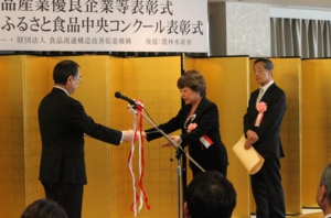 2012年3月13日、食品産業センターと食品流通構造改善促進機構が主催、農林水産省が後援する「第33回食品産業優良企業等表彰」の表彰式が東京で開催され、弊社は食品産業部門(農商工連携推進タイプ)にて「農林水産大臣賞」を授与されました。