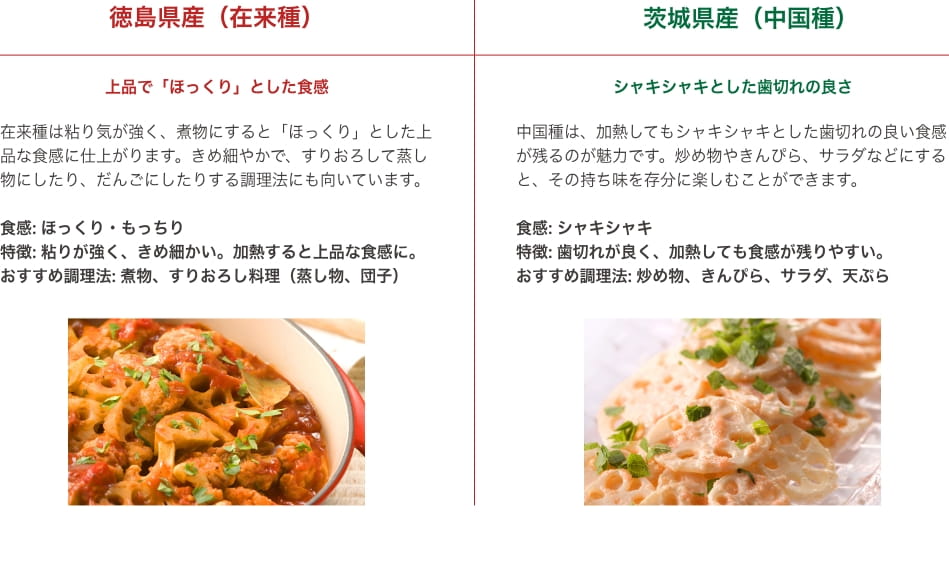 それぞれのれんこんの魅力を最大限に楽しむことができます。