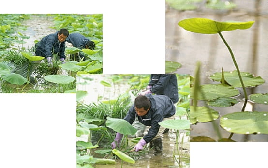 「低農薬」「有機肥料」による圃場改良から、マルハファームのレンコン栽培は始まります。